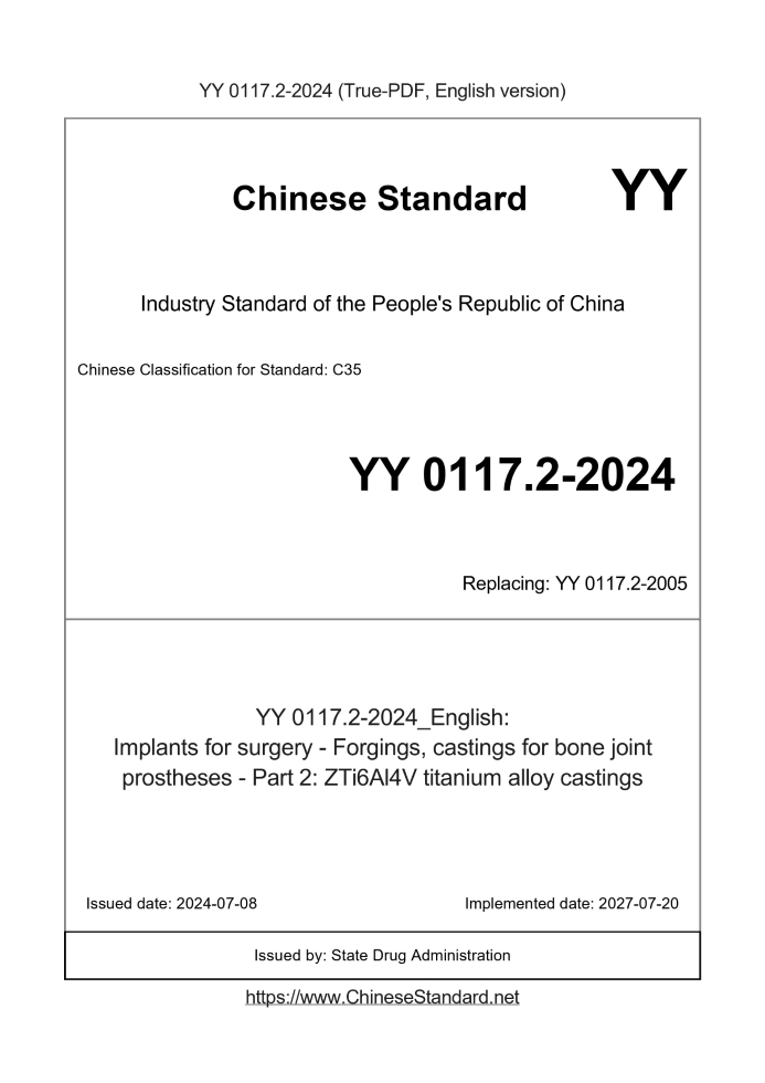 Delivery: <= 3 days. True-PDF full-copy in English will be manually translated and delivered via email. YY 0117.2-2024: Implants for surgery - Forgings, castings for bone joint prostheses - Part 2: ZTi6Al4V titanium alloy castings Status: Valid YY 0117.2: Historical versions