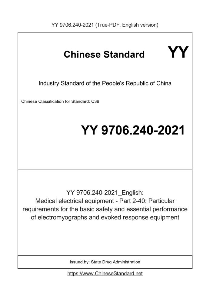 Delivery: <= 4 days. True-PDF full-copy in English will be manually translated and delivered via email. YY 9706.240-2021: Medical electrical equipment - Part 2-40: Particular requirements for the basic safety and essential performance of electromyographs and evoked response equipment Status: Valid