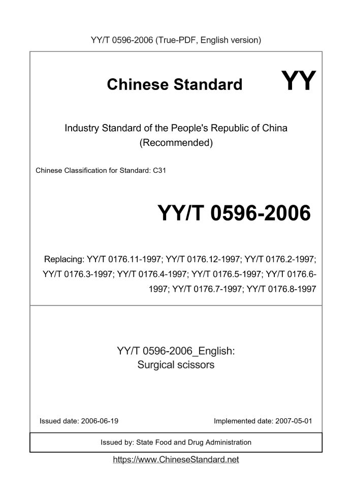Delivery: <= 3 days. True-PDF full-copy in English will be manually translated and delivered via email. YY/T 0596-2006: Surgical scissors Status: Valid