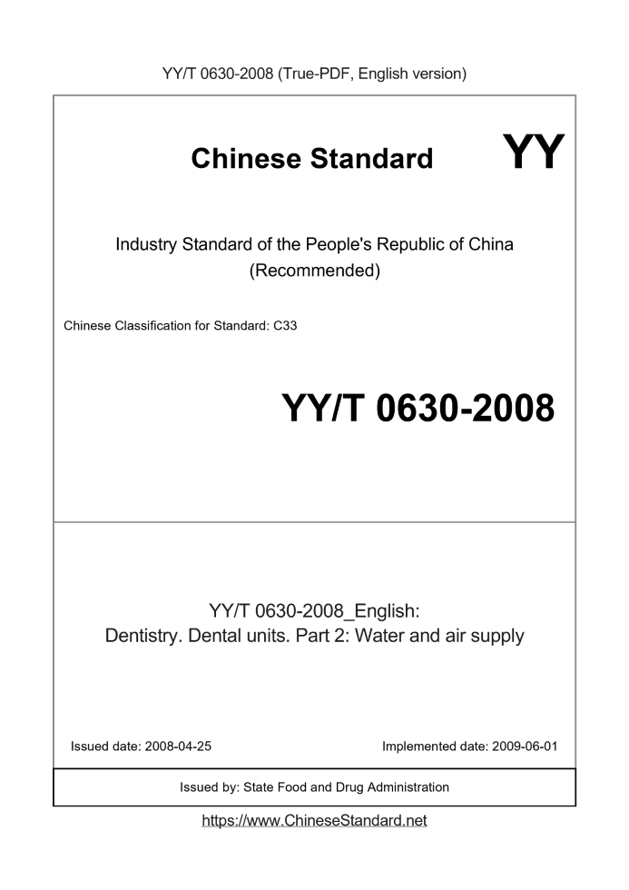 Delivery: <= 3 days. True-PDF full-copy in English will be manually translated and delivered via email. YY/T 0630-2008: Dentistry. Dental units. Part 2: Water and air supply Status: Obsolete