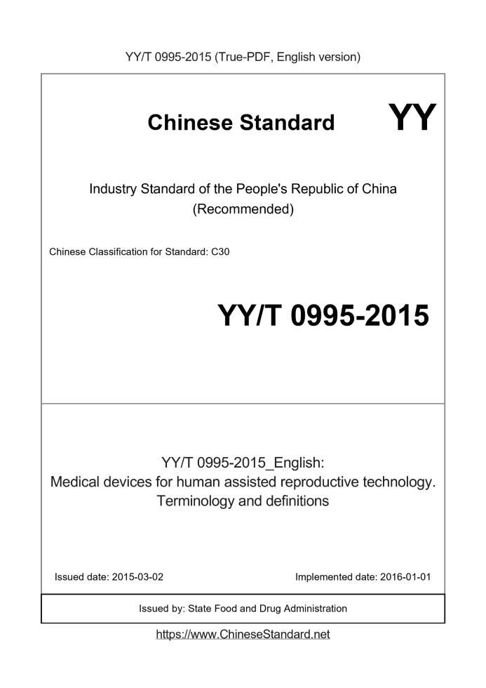 Delivery: <= 3 days. True-PDF full-copy in English will be manually translated and delivered via email. YY/T 0995-2015: Medical devices for human assisted reproductive technology. Terminology and definitions Status: Valid