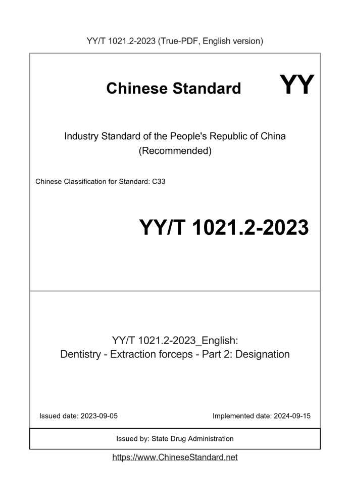 Delivery: <= 3 days. True-PDF full-copy in English will be manually translated and delivered via email. YY/T 1021.2-2023: Dentistry - Extraction forceps - Part 2: Designation Status: Valid