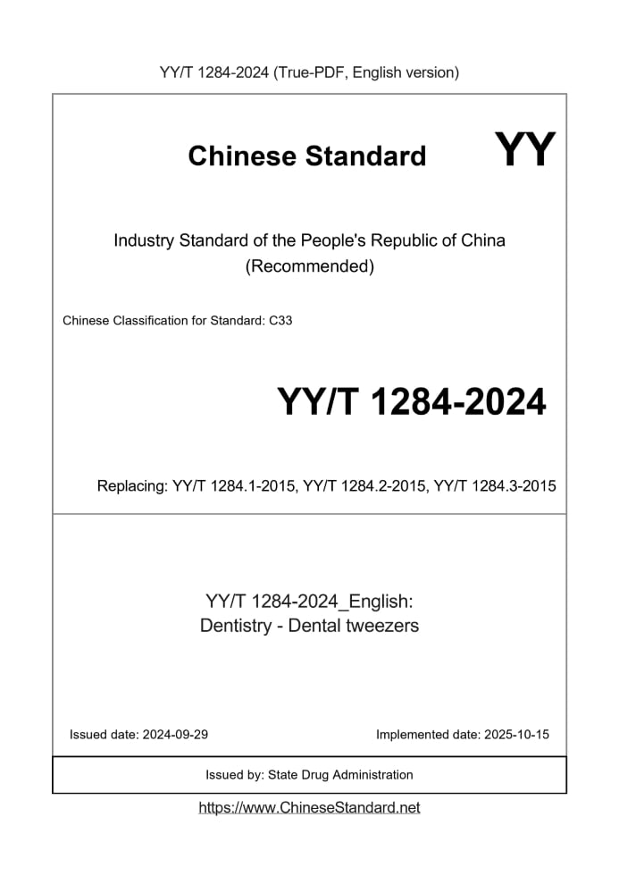 Delivery: <= 4 days. True-PDF full-copy in English will be manually translated and delivered via email. YY/T 1284-2024: Dentistry - Dental tweezers Status: Valid YY/T 1284: Historical versions