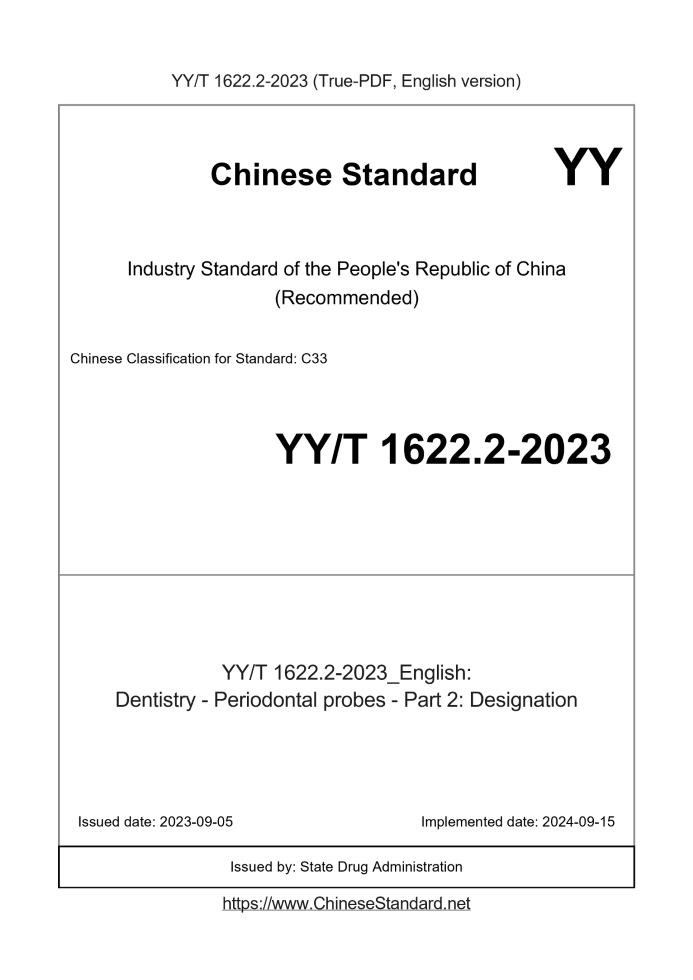 Delivery: <= 3 days. True-PDF full-copy in English will be manually translated and delivered via email. YY/T 1622.2-2023: Dentistry - Periodontal probes - Part 2: Designation Status: Valid
