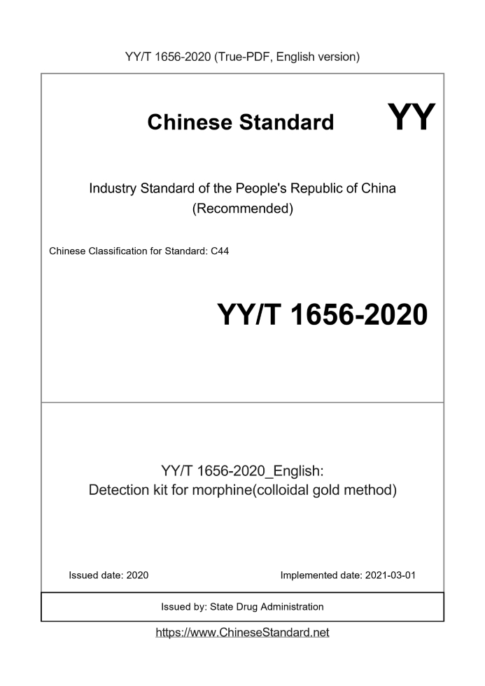 Delivery: <= 3 days. True-PDF full-copy in English will be manually translated and delivered via email. YY/T 1656-2020: Detection kit for morphine(colloidal gold method) Status: Valid