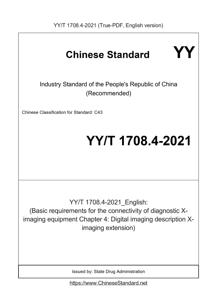 Delivery: <= 5 days. True-PDF full-copy in English will be manually translated and delivered via email. YY/T 1708.4-2021: (Basic requirements for the connectivity of diagnostic X-imaging equipment Chapter 4: Digital imaging description X-imaging extension) Status: Valid
