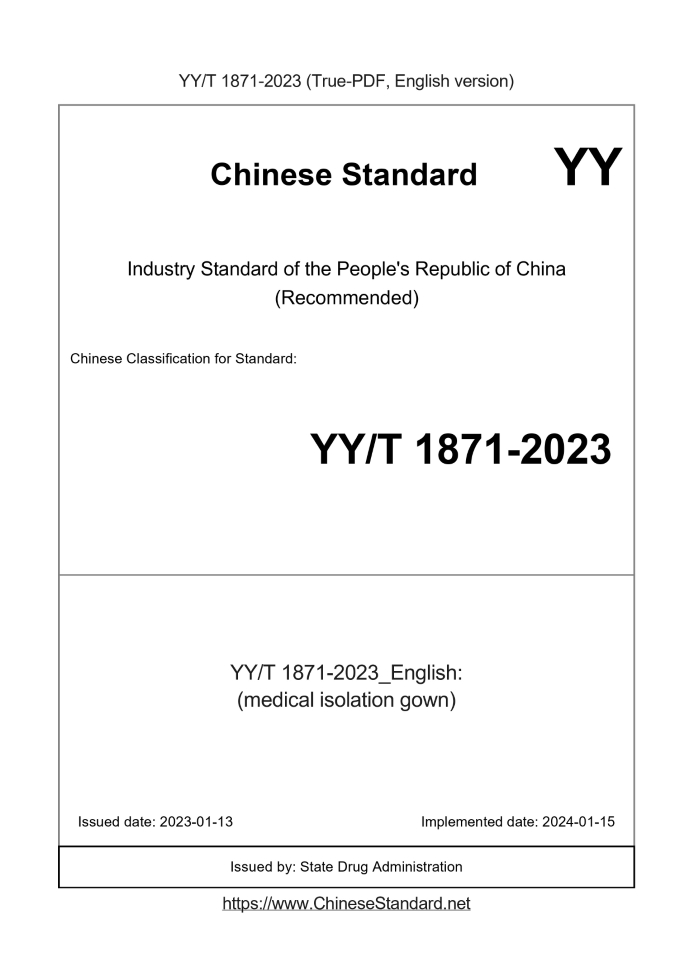 Delivery: <= 4 days. True-PDF full-copy in English will be manually translated and delivered via email. YY/T 1871-2023: (medical isolation gown) Status: Valid