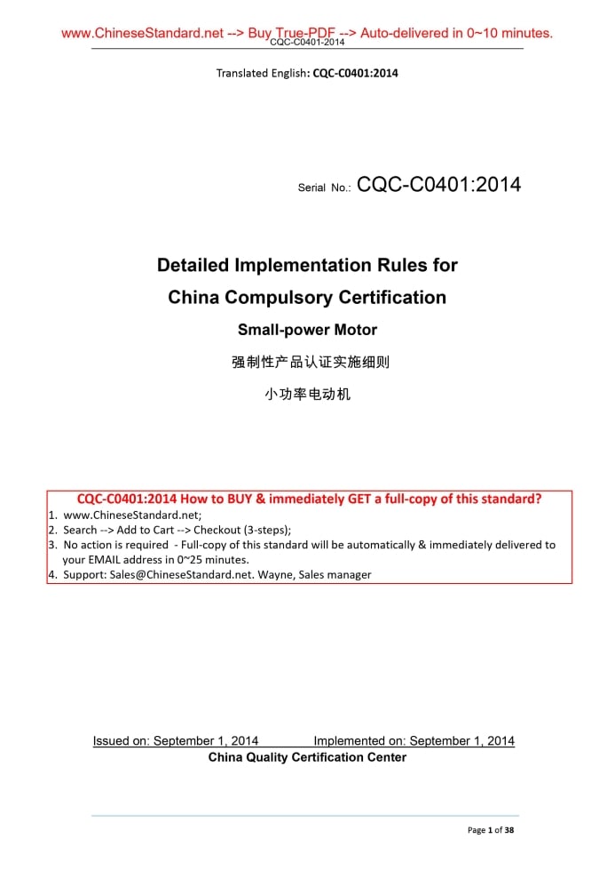 CQC-C0401-2014: China Compulsory Certification Implementation Detailed-Rules - Small power motors Delivery: 9 seconds. True-PDF full-copy in English & invoice will be downloaded + auto-delivered via email. See step-by-step procedure