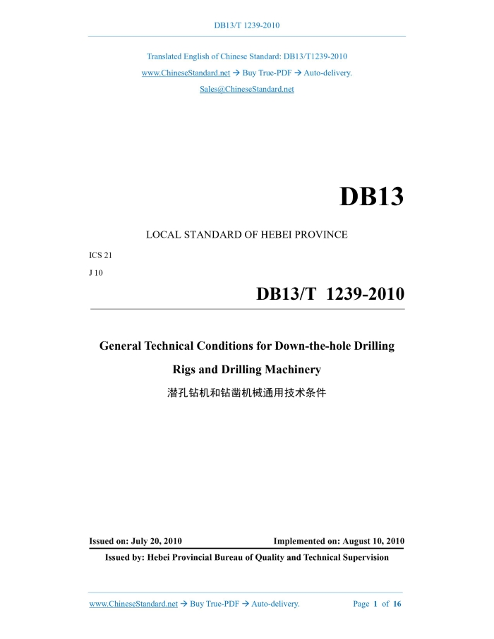 DB13T1239-2010: Drilling rig and drilling machinery general technical conditions Delivery: 9 seconds. True-PDF full-copy in English & invoice will be downloaded + auto-delivered via email. See step-by-step procedure