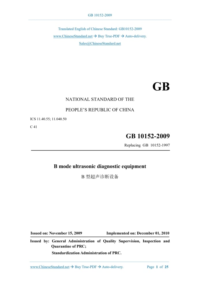 GB 10152-2009: B mode ultrasonic diagnostic equipment Delivery: 9 seconds. True-PDF full-copy in English & invoice will be downloaded + auto-delivered via email. See step-by-step procedure Status: Valid GB 10152: Historical versions