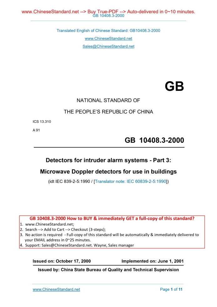 GB 10408.3-2000: Detectors for intruder alarm systems. Part 3: Microwave doppler detectors for use in building Delivery: 9 seconds. True-PDF full-copy in English & invoice will be downloaded + auto-delivered via email. See step-by-step procedure GB 10408.3: Historical versions