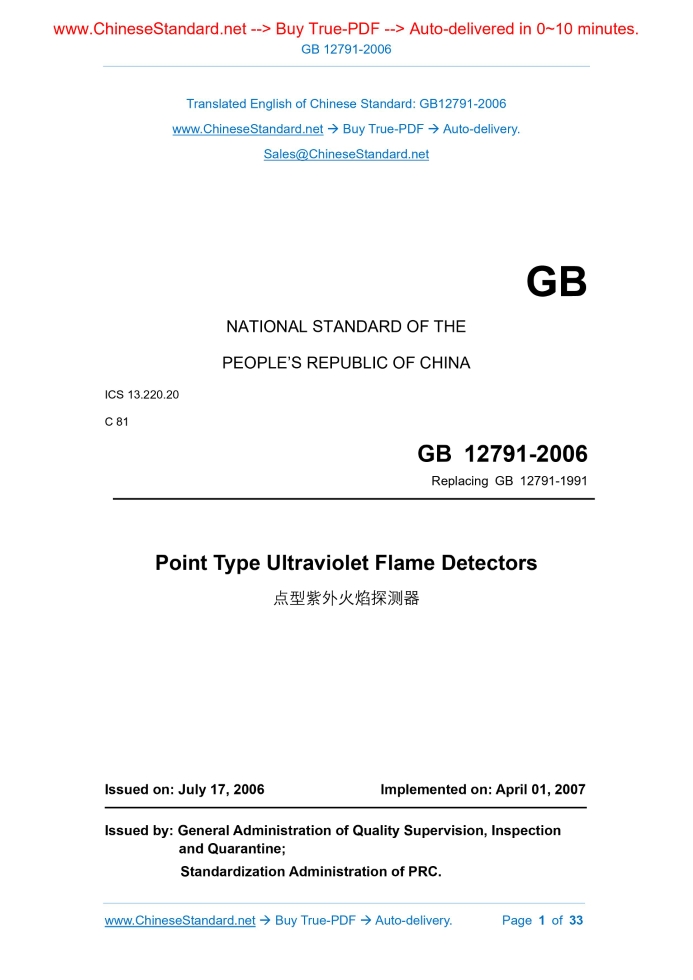 GB 12791-2006: Point type ultraviolet flame detectors Delivery: 9 seconds. True-PDF full-copy in English & invoice will be downloaded + auto-delivered via email. See step-by-step procedure Status: Valid GB 12791: Historical versions