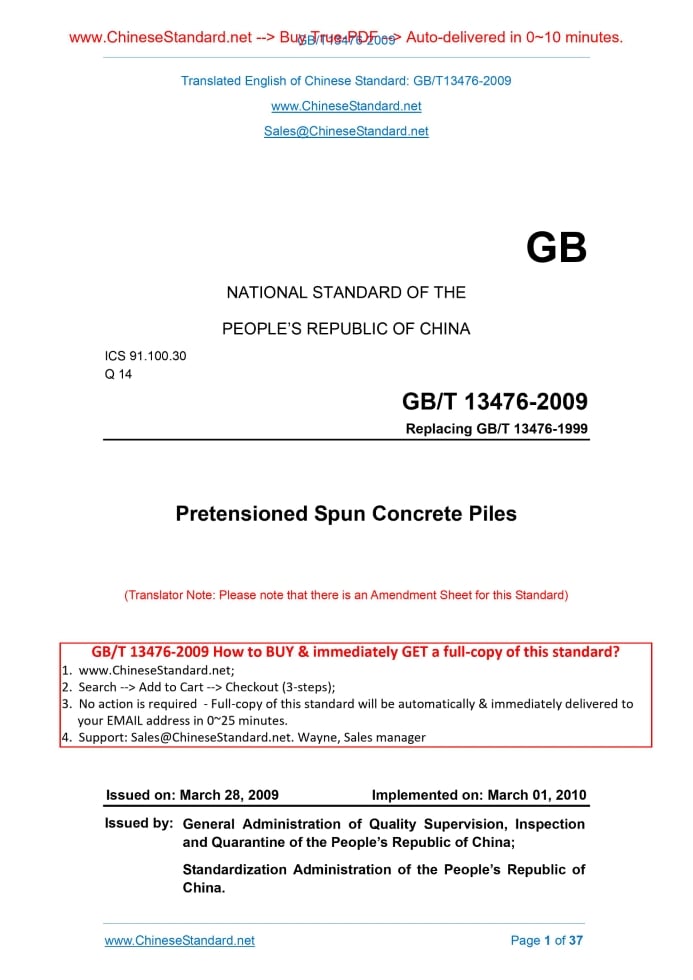GB 13476-2009: [GB/T 13476-2009] Pretensioned spun concrete piles [including 2014 MODIFICATION 1] Delivery: 9 seconds. True-PDF full-copy in English & invoice will be downloaded + auto-delivered via email. See step-by-step procedure Status: Obsolete GB 13476: Historical versions