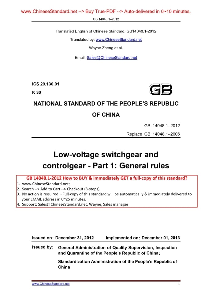 GB 14048.1-2012: [GB/T 14048.1-2012] Low-voltage switchgear and controlgear -- Part 1: General rules Delivery: 9 seconds. True-PDF full-copy in English & invoice will be downloaded + auto-delivered via email. See step-by-step procedure Status: Obsolete GB 14048.1: Historical versions