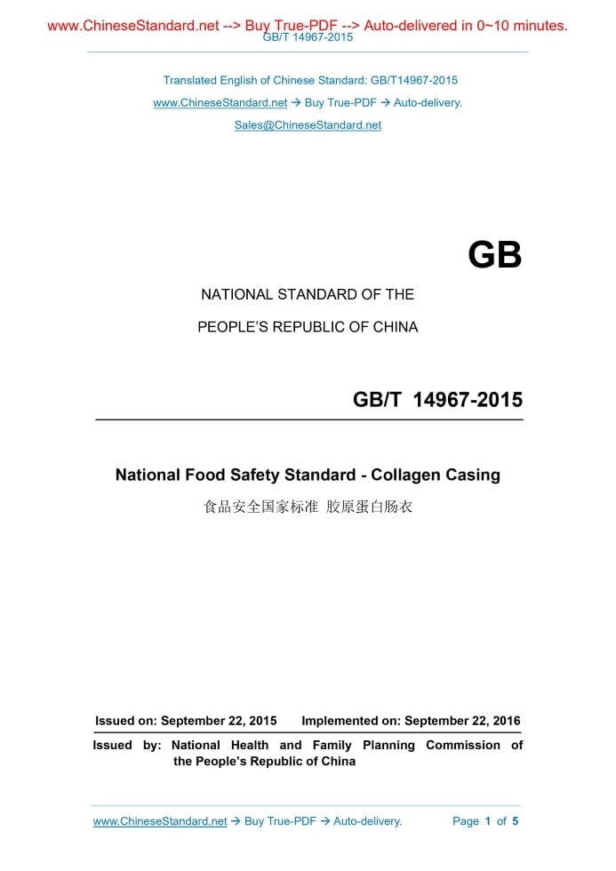 GB 14967-2015: National Food Safety Standard -- Collagen casings Delivery: 9 seconds. True-PDF full-copy in English & invoice will be downloaded + auto-delivered via email. See step-by-step procedure Status: Valid GB 14967: Historical versions