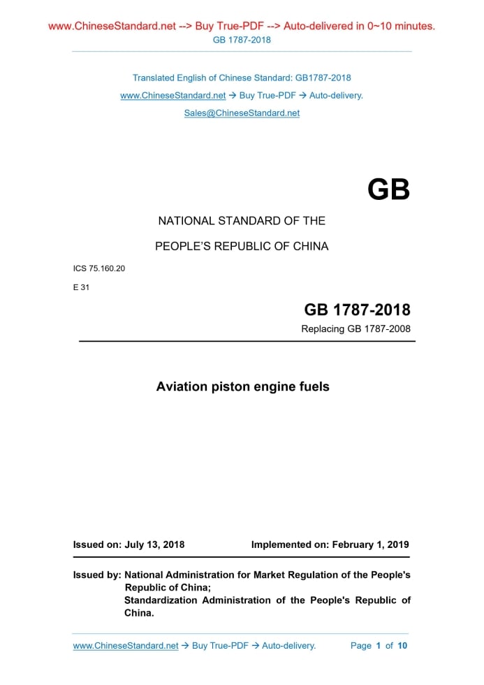 GB 1787-2018: Aviation piston engine fuels Delivery: 9 seconds. True-PDF full-copy in English & invoice will be downloaded + auto-delivered via email. See step-by-step procedure Status: Valid GB 1787: Historical versions