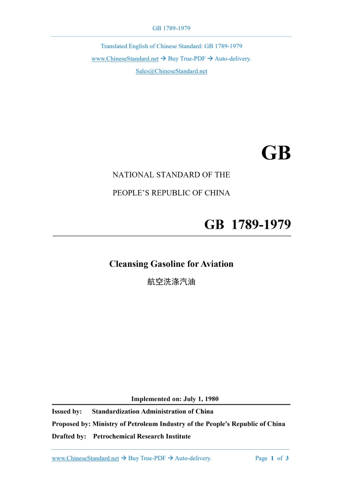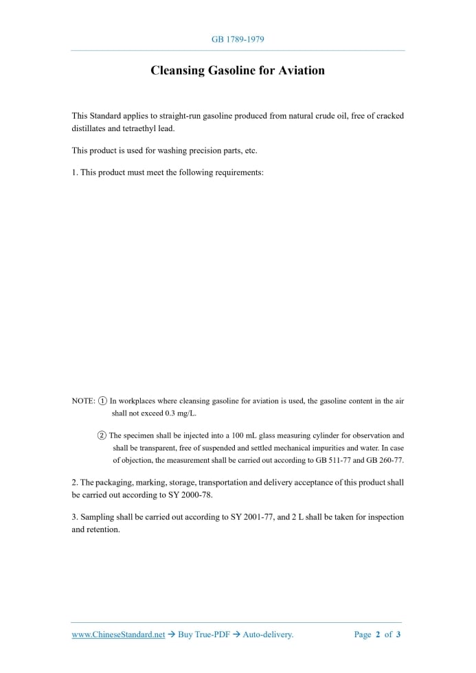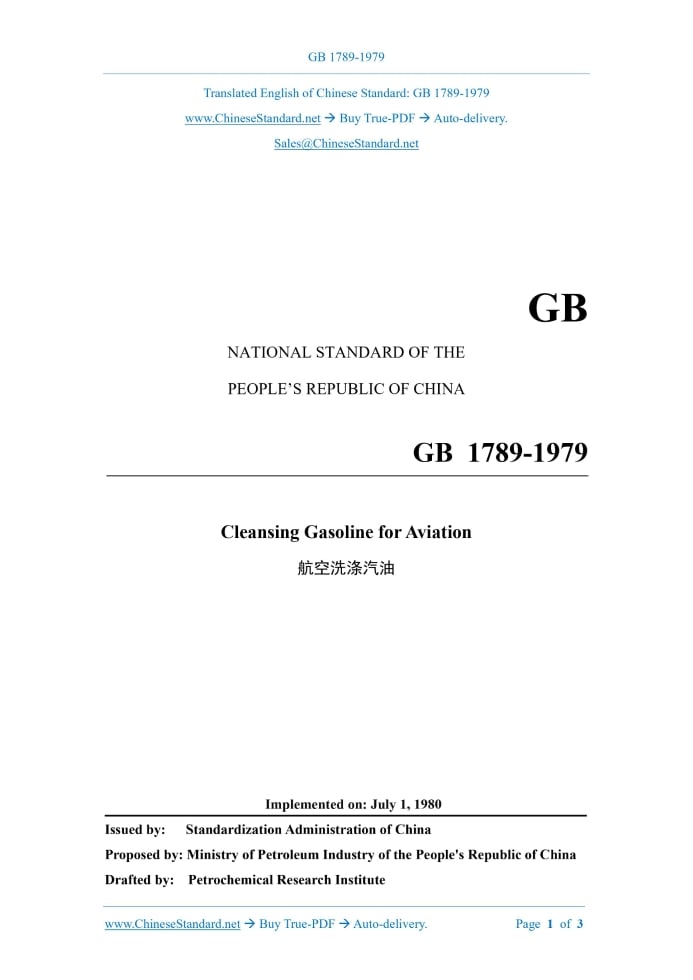GB 1789-1979: Cleansing gasoline for aviation Delivery: 9 seconds. True-PDF full-copy in English & invoice will be downloaded + auto-delivered via email. See step-by-step procedure