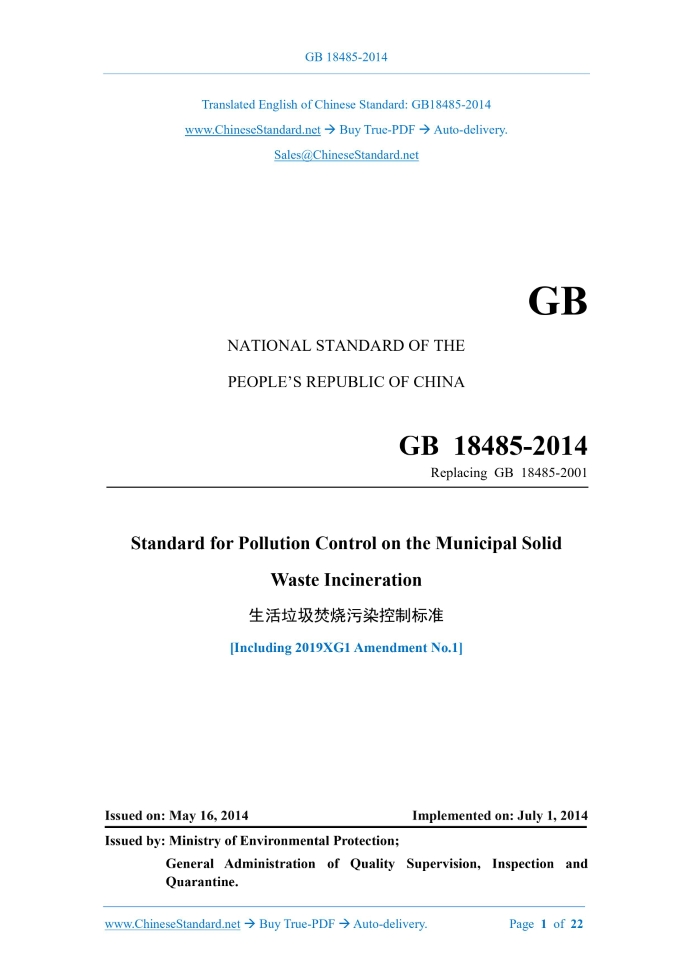 GB 18485-2014: Standard for pollution control on the municipal solid waste incineration Delivery: 9 seconds. True-PDF full-copy in English & invoice will be downloaded + auto-delivered via email. See step-by-step procedure Status: Valid GB 18485: Historical versions