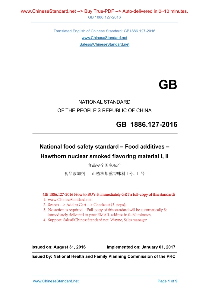 GB 1886.127-2016: National Food Safety Standard -- Food Additives -- Hawthorn nuclear smoked flavouring material I, II Delivery: 9 seconds. True-PDF full-copy in English & invoice will be downloaded + auto-delivered via email. See step-by-step procedure Status: Valid