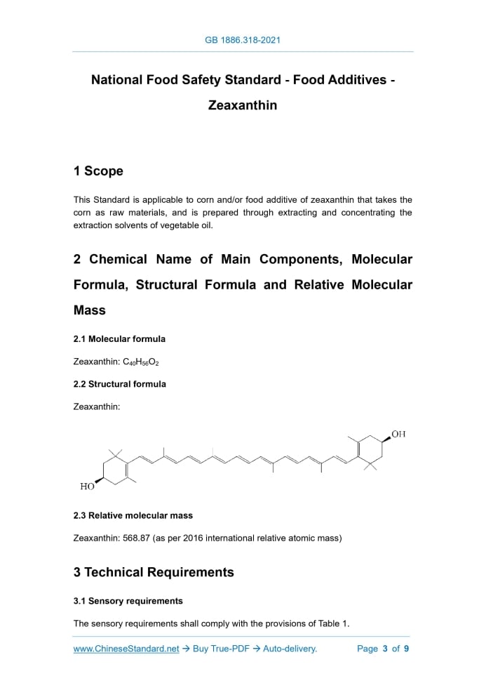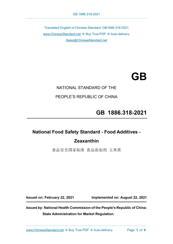 GB 1886.318-2021: National food safety standard - Food additives - Zeaxanthin Delivery: 9 seconds. True-PDF full-copy in English & invoice will be downloaded + auto-delivered via email. See step-by-step procedure Status: Valid
