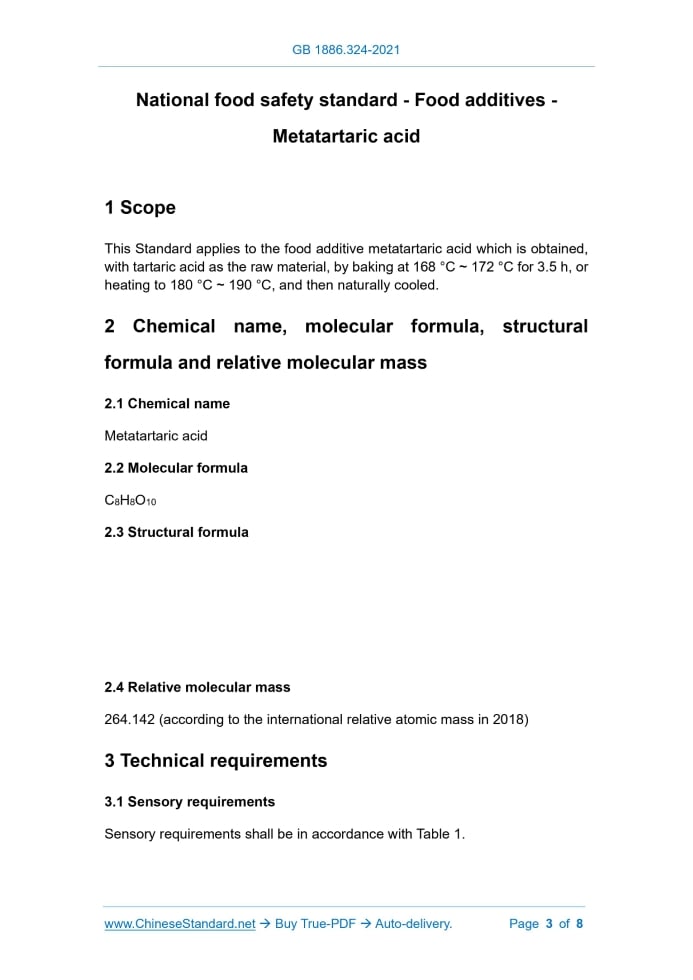 GB 1886.324-2021: National food safety standard - Food additives - Metatartaric acid Delivery: 9 seconds. True-PDF full-copy in English & invoice will be downloaded + auto-delivered via email. See step-by-step procedure Status: Valid