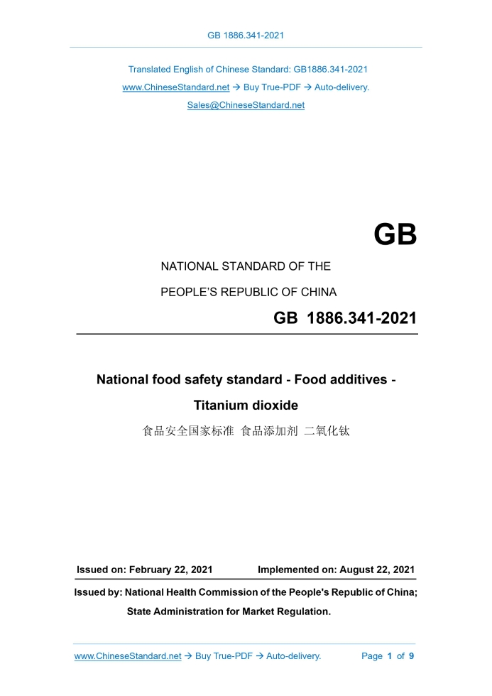 GB 1886.341-2021: National food safety standard - Food additives - Titanium dioxide