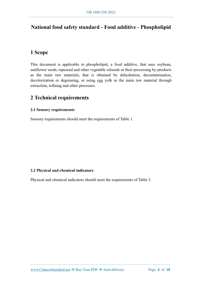 GB 1886.358-2022: National food safety standard - Food additives - Phospholipid Delivery: 9 seconds. True-PDF full-copy in English & invoice will be downloaded + auto-delivered via email. See step-by-step procedure Status: Valid
