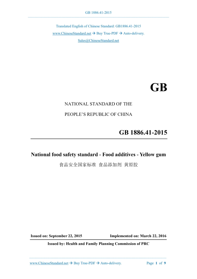 GB 1886.41-2015: National Food Safety Standard -- Food Additives -- Yellow gum Delivery: 9 seconds. True-PDF full-copy in English & invoice will be downloaded + auto-delivered via email. See step-by-step procedure Status: Valid