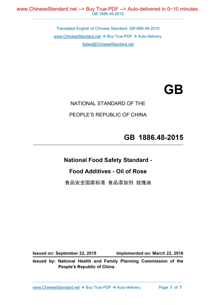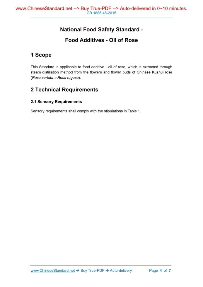 GB 1886.48-2015: National Food Safety Standard -- Food Additives -- Oil of rose Delivery: 9 seconds. True-PDF full-copy in English & invoice will be downloaded + auto-delivered via email. See step-by-step procedure Status: Valid