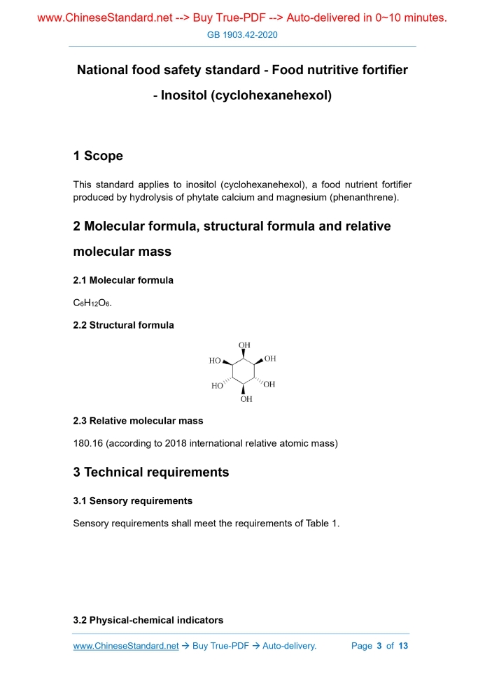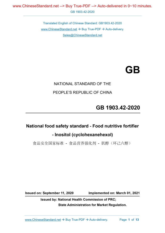 GB 1903.42-2020: National food safety standard - Food nutritive fortifier - Inositol (cyclohexanehexol) Delivery: 9 seconds. True-PDF full-copy in English & invoice will be downloaded + auto-delivered via email. See step-by-step procedure Status: Valid