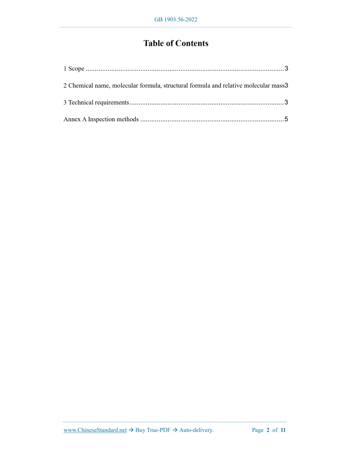 Similar standardsGB 1903.56-2022: National food safety standard - Food nutritional fortification substance - Sodium selenate---This is an excerpt. Full copy of true-PDF in English version (including equations, symbols, images, flow-chart, tables, and figures etc.), auto-downloaded/delivered in 9 seconds, can be purchased online: https://www.ChineseStandard.net/PDF.aspx/GB1903.56-2022 GB NATIONAL STANDARD OF THE PEOPLE’S REPUBLIC OF CHINA National Food Safety Standard - Food nutritional fortification substance - Sodium selenate ISSUED ON: JUNE 30, 2022 IMPLEMENTED ON: DECEMBER 30, 2022 Issued by: National Health Commission of the People's Republic of China; State Administration for Market Regulation. Table of Contents1 Scope ... 3 2 Chemical name, molecular formula, structural formula and relative molecular mass3 3 Technical requirements ... 3 Annex A Inspection methods ... 5 National Food Safety Standard - Food nutritional fortification substance - Sodium selenate1 ScopeThis document applies to sodium selenite, a food nutritional fortification substance, of which sodium selenite is prepared from selenous acid and sodium hydroxide, and then it is obtained by oxidizing sodium selenite with hydrogen peroxide. 2 Chemical name, molecular formula, structural formula and relative molecular mass 2.1 Chemical name Sodium selenate. 2.2 Molecular formula Na2SeO4 2.3 Structural formula 2.4 Relative molecular mass 188.94 (according to the international relative atomic mass in 2018)3 Technical requirements3.1 Sensory requirements Sensory requirements shall meet the requirements in Table 1.Annex AInspection methods A.1 Warning According to the provisions of Chapter 6 of GB 12268-2012, sodium selenate belongs to item 6.1 toxic substance. Handle with care. Some reagents used in the inspection methods of this Standard are toxic or corrosive. Operate according to relevant national regulations. Use it with caution. If splashed on skin, rinse with water immediately. Severe cases shall seek medical attention immediately. When using volatile acids, it shall be done in a fume hood. A.2 General provisions The reagents and water used in this Standard refer to analytically pure reagents and grade three water specified in GB/T 6682 unless other requirements are specified. The standard solution, standard solution for impurity determination, preparations and products used in the test shall be prepared according to the provisions of GB/T 601, GB/T 602 and GB/T 603 unless other requirements are specified. The solution used in the test refers to the aqueous solution when the solvent used for preparation is not indicated. A.3 Identification test A.3.1 Reagents and materials A.3.1.1 Hydrochloric acid (ρ1.19g/mL). A.3.1.2 Sulfuric acid (ρl.80g/mL). A.3.1.3 Sodium hydroxide. A.3.1.4 Sodium thiosulfate solution (100g/L): Weigh 10g of sodium thiosulfate pentahydrate (Na2S2O3·5H2O). Use water to dissolve. Set volume constant to 100mL. A.3.1.5 Hydrochloric acid solution: 1+1. A.3.1.6 Sulfuric acid solution: 1+1. A.3.1.7 Sodium hydroxide solution (200g/L): Weigh 20g of sodium hydroxide. Use water to dissolve. Set volume constant to 100mL. A.3.1.8 Hydrazine hydrochloride. A.3.1.9 Platinum wire. A.4.2.1 Selenium: Selenium (Se) content is not less than 99.99%. A.4.2.2 Hydrochloric acid. A.4.2.3 Nitric acid. A.4.2.4 Sulfuric acid solution: 1+1. A.4.2.5 Hydrochloric acid solution: 1+1. A.4.2.6 Potassium iodide solution: 100g/L. Weigh 10g of potassium iodide. Dissolve in water. Transfer all to a 100mL volumetric flask. Dilute to the scale. Shake well. Store in a brown bottle. This solution is prepared when it is needed. A.4.2.7 Starch indicator solution: 10g/L. A.4.2.8 Sodium thiosulfate standard titration solution: c(Na2S2O3)≈0.1mol/L. A.4.2.9 Sodium thiosulfate standard titration solution: c(Na2S2O3)≈0.01mol/L. Pipette 10.00mL of sodium thiosulfate standard titration solution (A.4.2.8) into a 100mL volumetric flask. Use water to set volume constant to the scale. Shake well. A.4.3 Instruments and equipment A.4.3.1 Electronic balance: the resolution is 0.01g and 0.0001g. A.4.3.2 Electric heating plate. A.4.4 Analysis steps A.4.4.1 Determination of sodium selenite Weigh 5.0g of the specimen after determining the drying loss, accurate to 0.0001g. Place in a 250mL Erlenmeyer flask. Add 50mL of water to dissolve. Add 10mL of sulfuric acid solution (A.4.2.4). Shake well. Add 2mL of potassium iodide solution (A.4.2.6). Shake well. Then add 5mL of starch indicator solution (A.4.2.7). Titrate with sodium thiosulfate standard titration solution (A.4.2.9) until the blue color disappears, which shall be the end point. If the consumed titration volume is above 10mL, the weight of the specimen to be weighed shall be appropriately reduced. Conduct blank test at the same time. Except that the specimen is not added for the blank test, the types and amounts of other added reagents (except the standard titration solution) are the same as the test solution. A.4.4.2 Determination of sodium selenate Weigh 1.2g of the specimen after determining the drying loss, accurate to 0.0001g. Place in a 250mL beaker. After slowly adding 20mL of hydrochloric acid, cover with a watch glass or small beaker. Heat at low temperature for 30min. Do not boil the solution. After the yellow-green upper layer of the solution dissipates, remove it and cool it down. Transfer the solution to a 100mL volumetric flask. Use water to dilute to the scale. Shake well. Pipette 10.00mL of the solution. Place in a 250mL Erlenmeyer flask. Add 20mL of water to dissolve. Add 10mL of hydrochloric acid solution (A.4.2.5). Shake well. Use sodium thiosulfate standard titration solution (A.4.2.8) to titrate. Add 2mL of potassium iodide solution (A.4.2.6) near the end point and shake well. Then add 5mL of starch indicator solution (A.4.2.7). Continue to titrate till the blue color disappears, which shall be the end point. Conduct the blank test at the same time. Except that the specimen is