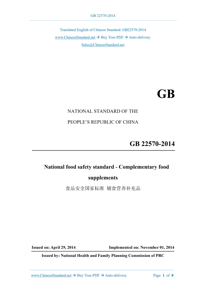 GB 22570-2014: National Food Safety Standard -- Complementary food supplements Delivery: 9 seconds. True-PDF full-copy in English & invoice will be downloaded + auto-delivered via email. See step-by-step procedure Status: Valid GB 22570: Historical versions