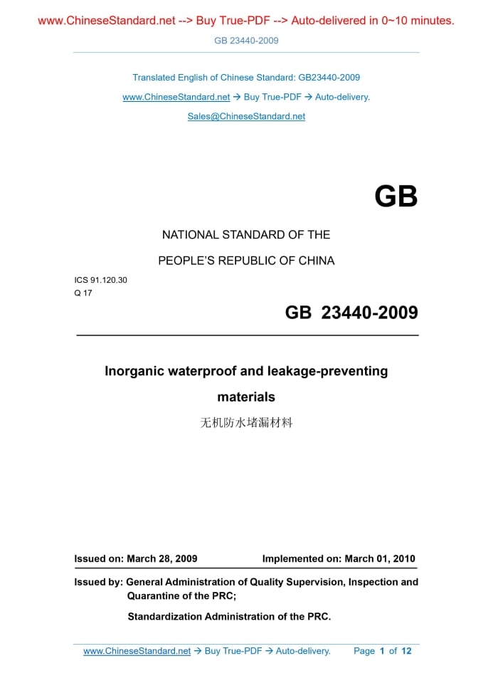 GB 23440-2009: Inorganic waterproof and leakage-preventing materials Delivery: 9 seconds. True-PDF full-copy in English & invoice will be downloaded + auto-delivered via email. See step-by-step procedure Status: Valid GB 23440: Historical versions