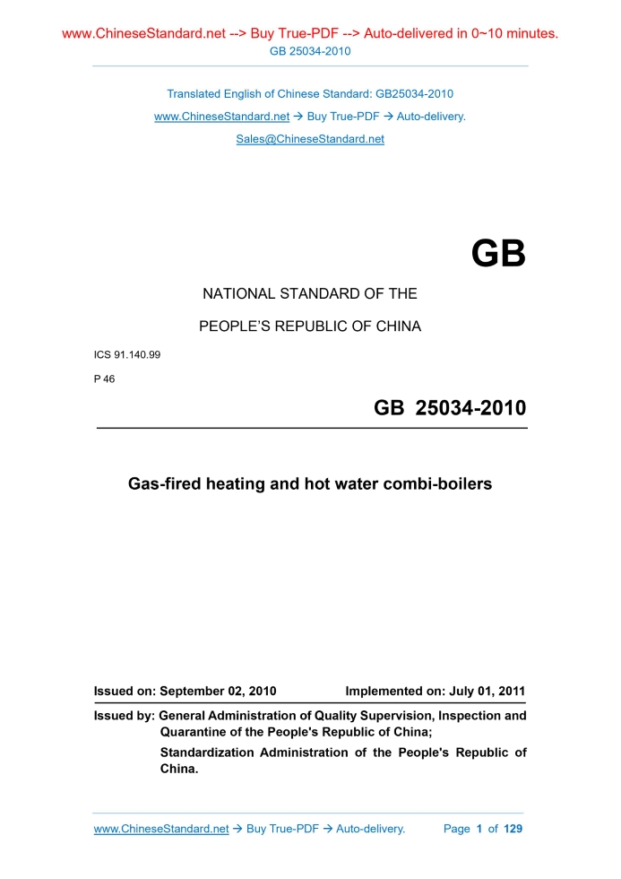 GB 25034-2010: Gas-fired heating and hot water combi-boilers Delivery: 9 seconds. True-PDF full-copy in English & invoice will be downloaded + auto-delivered via email. See step-by-step procedure Status: Obsolete GB 25034: Historical versions