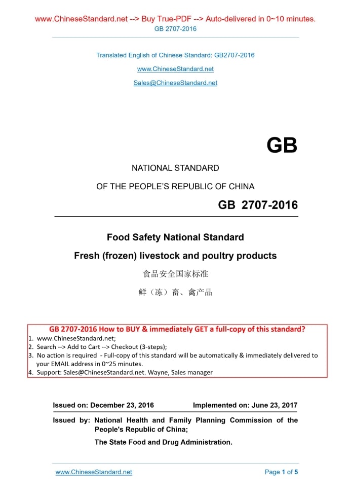 GB 2707-2016: Hygienic standard for fresh (frozen) meat of livestock Delivery: 9 seconds. True-PDF full-copy in English & invoice will be downloaded + auto-delivered via email. See step-by-step procedure Status: Valid GB 2707: Historical versions