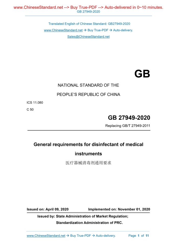 GB 27949-2020: General requirements for disinfectant of medical instruments Delivery: 9 seconds. True-PDF full-copy in English & invoice will be downloaded + auto-delivered via email. See step-by-step procedure Status: Valid GB 27949: Historical versions