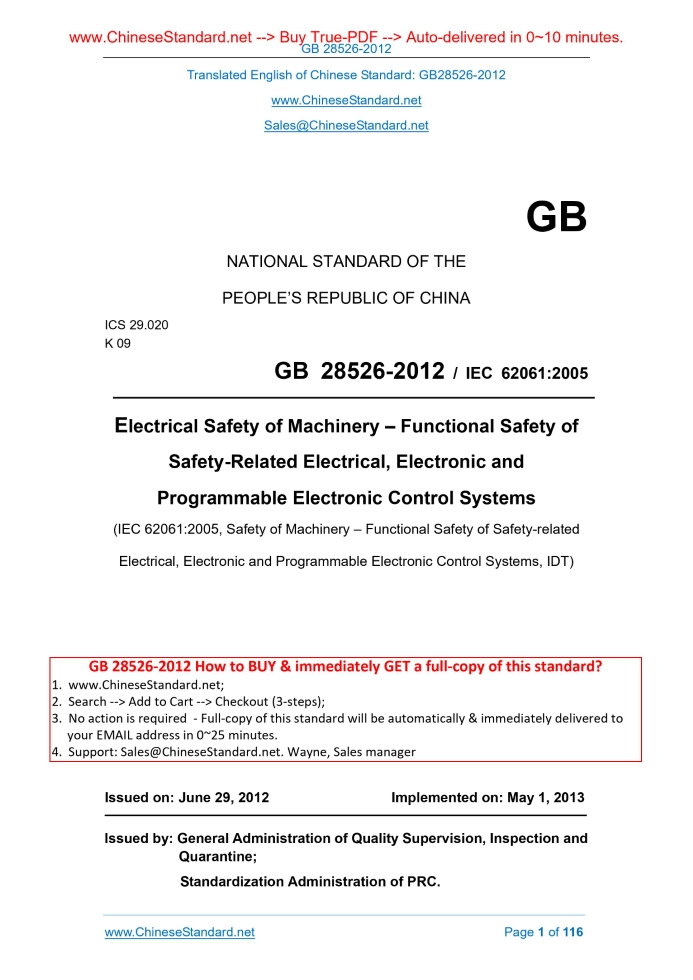 GB 28526-2012: Electrical safety of machinery -- Functional safety of safety-related electrical, electronic and programmable electronic control systems Delivery: 9 seconds. True-PDF full-copy in English & invoice will be downloaded + auto-delivered via email. See step-by-step procedure Status: Valid