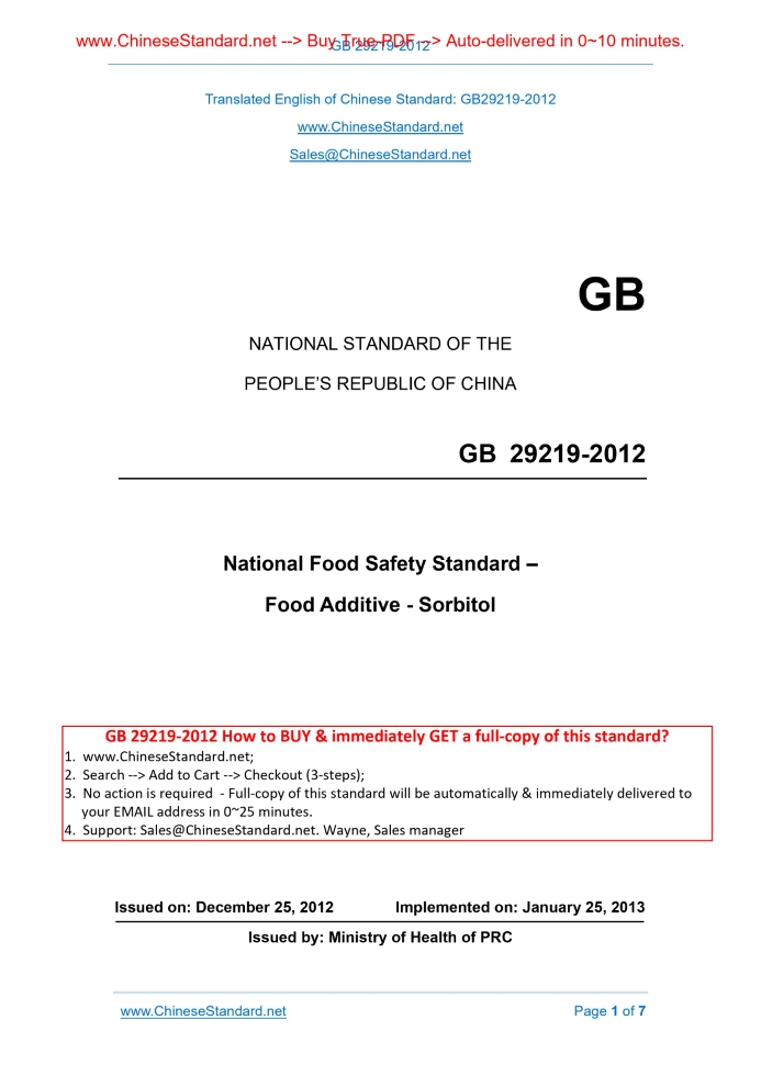 GB 29219-2012: Food additive sorbitol Delivery: 9 seconds. True-PDF full-copy in English & invoice will be downloaded + auto-delivered via email. See step-by-step procedure Status: Obsolete