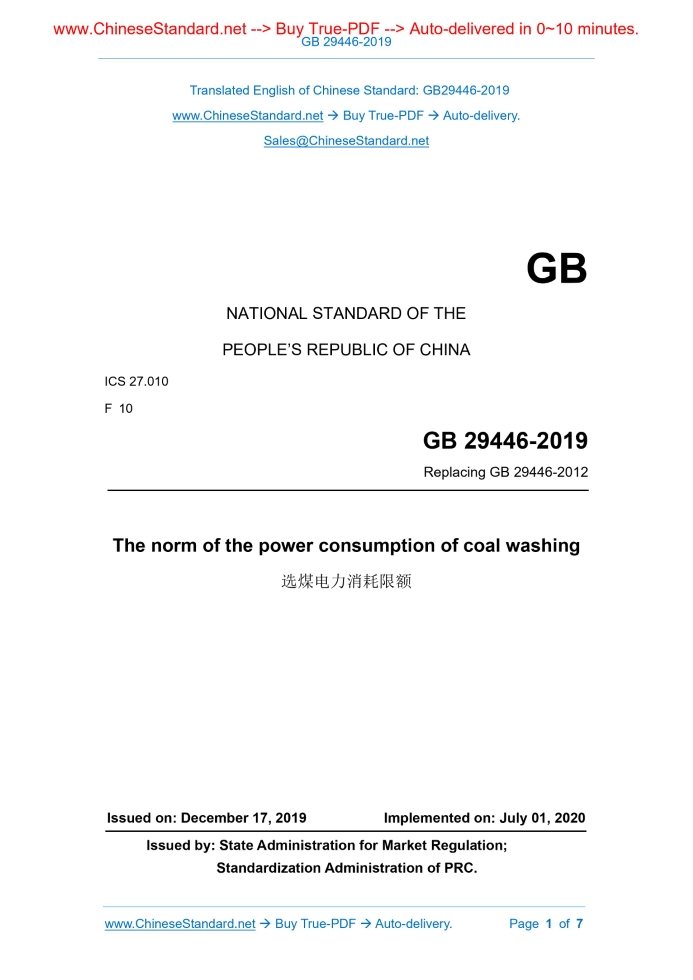 GB 29446-2019: The norm of the power consumption of coal washing Delivery: 9 seconds. True-PDF full-copy in English & invoice will be downloaded + auto-delivered via email. See step-by-step procedure Status: Valid GB 29446: Historical versions