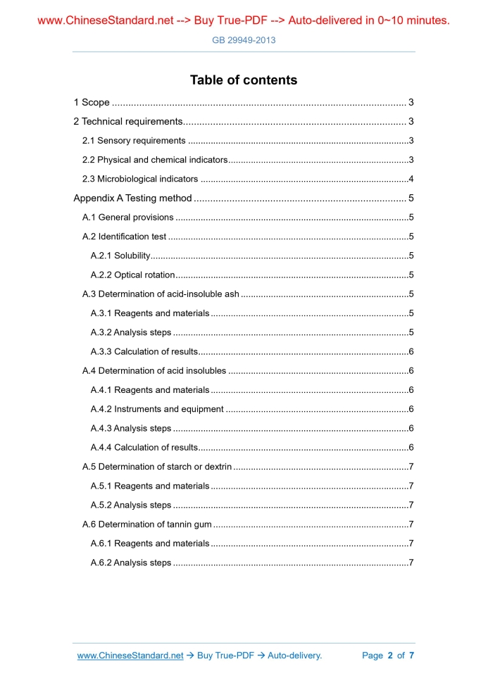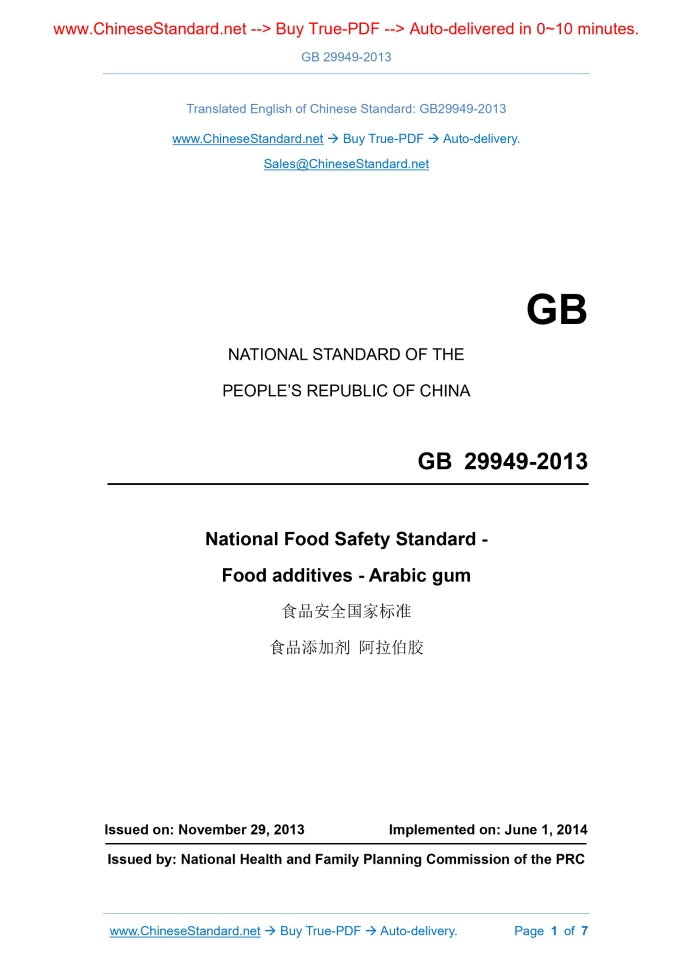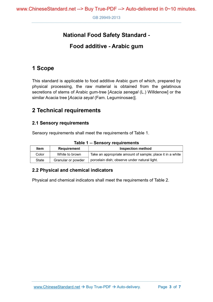 GB 29949-2013: Food additive -- Gum Arabic Delivery: 9 seconds. True-PDF full-copy in English & invoice will be downloaded + auto-delivered via email. See step-by-step procedure Status: Valid