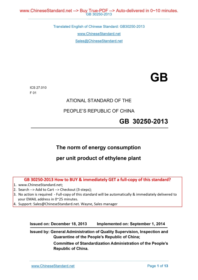 GB 30250-2013: The norm of energy consumption per unit product of ethylene plant Delivery: 9 seconds. True-PDF full-copy in English & invoice will be downloaded + auto-delivered via email. See step-by-step procedure Status: Valid