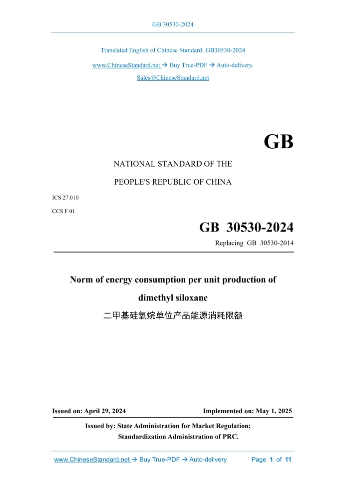 GB 30530-2024: Norm of energy consumption per unit production of dimethyl siloxane Delivery: 9 seconds. True-PDF full-copy in English & invoice will be downloaded + auto-delivered via email. See step-by-step procedure Status: Valid GB 30530: Historical versions