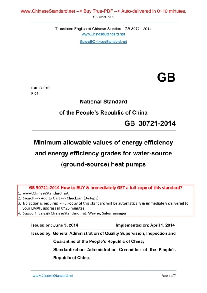 GB 30721-2014: Minimum allowable values of energy efficiency and energy efficiency grades for water-source (ground-source) heat pumps Delivery: 9 seconds. True-PDF full-copy in English & invoice will be downloaded + auto-delivered via email. See step-by-step procedure Status: Valid
