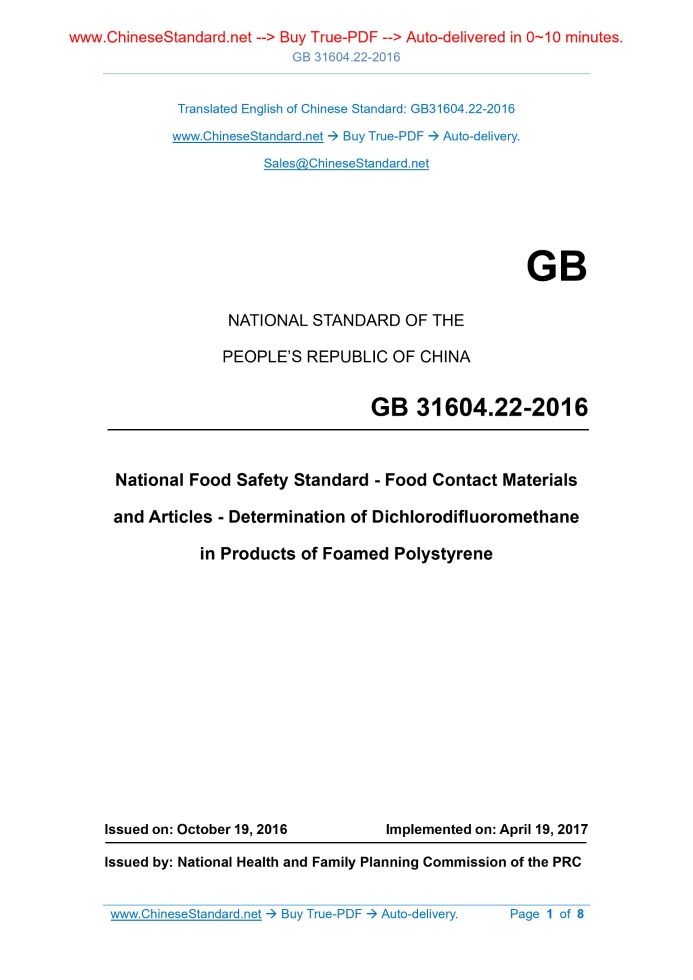 GB 31604.22-2016: Method for analysis of hygienic standard of products of foamed polystyrene for food packaging Delivery: 9 seconds. True-PDF full-copy in English & invoice will be downloaded + auto-delivered via email. See step-by-step procedure Status: Valid
