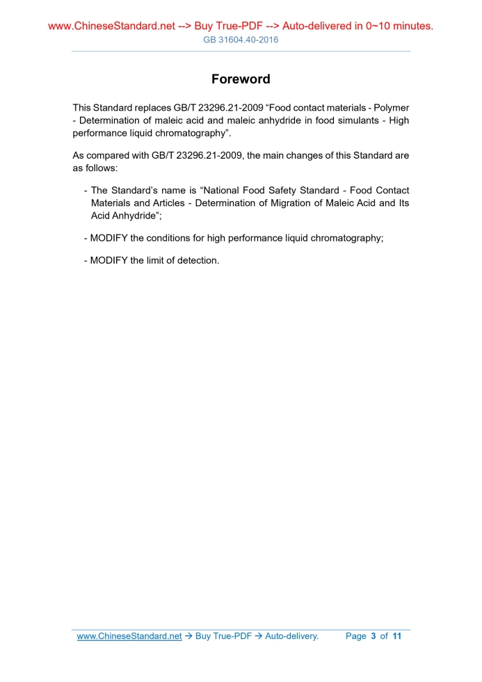 GB 31604.40-2016: National food safety standard - Food Contact Materials and Articles - Determination of Migration of Maleic Acid and Its Acid Anhydride Delivery: 9 seconds. True-PDF full-copy in English & invoice will be downloaded + auto-delivered via email. See step-by-step procedure Status: Valid