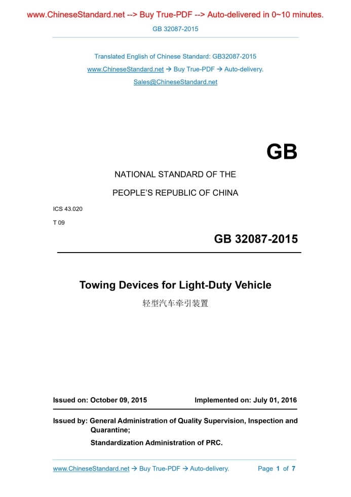 GB 32087-2015: Towing devices for light-duty vehicle Delivery: 9 seconds. True-PDF full-copy in English & invoice will be downloaded + auto-delivered via email. See step-by-step procedure Status: Valid