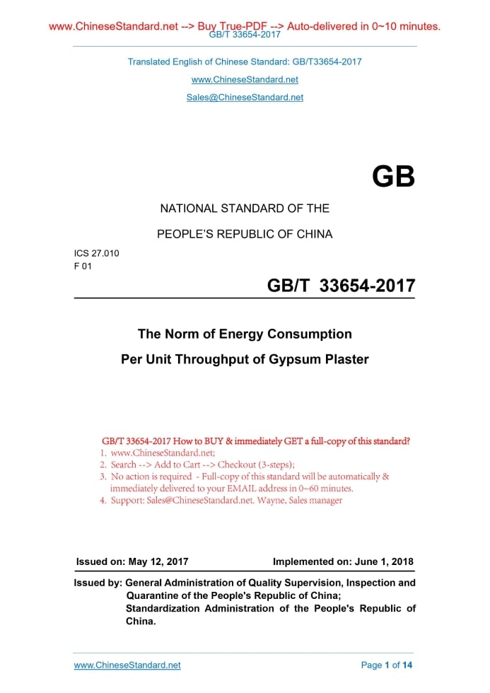 GB 33654-2017: The Norm of Energy Consumption Per Unit Throughput of Gypsum Plaster Delivery: 9 seconds. True-PDF full-copy in English & invoice will be downloaded + auto-delivered via email. See step-by-step procedure Status: Valid