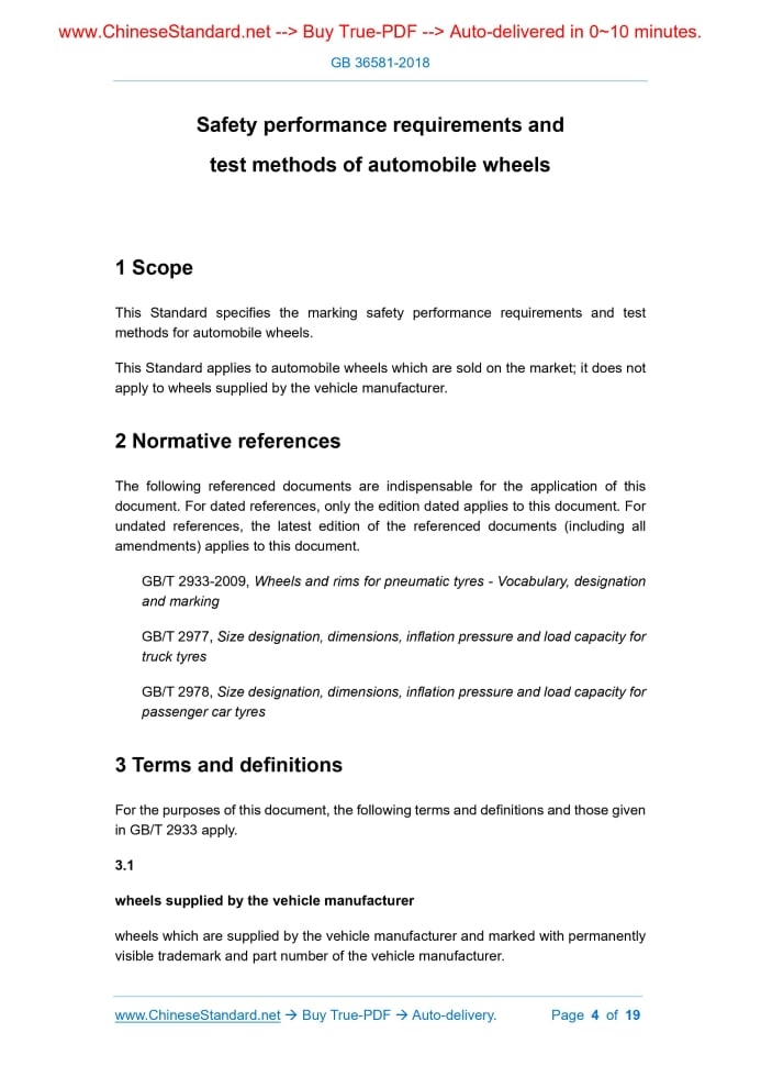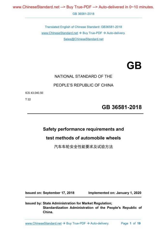 GB 36581-2018: Safety performance requirements and test methods of automobile wheels Delivery: 9 seconds. True-PDF full-copy in English & invoice will be downloaded + auto-delivered via email. See step-by-step procedure Status: Valid