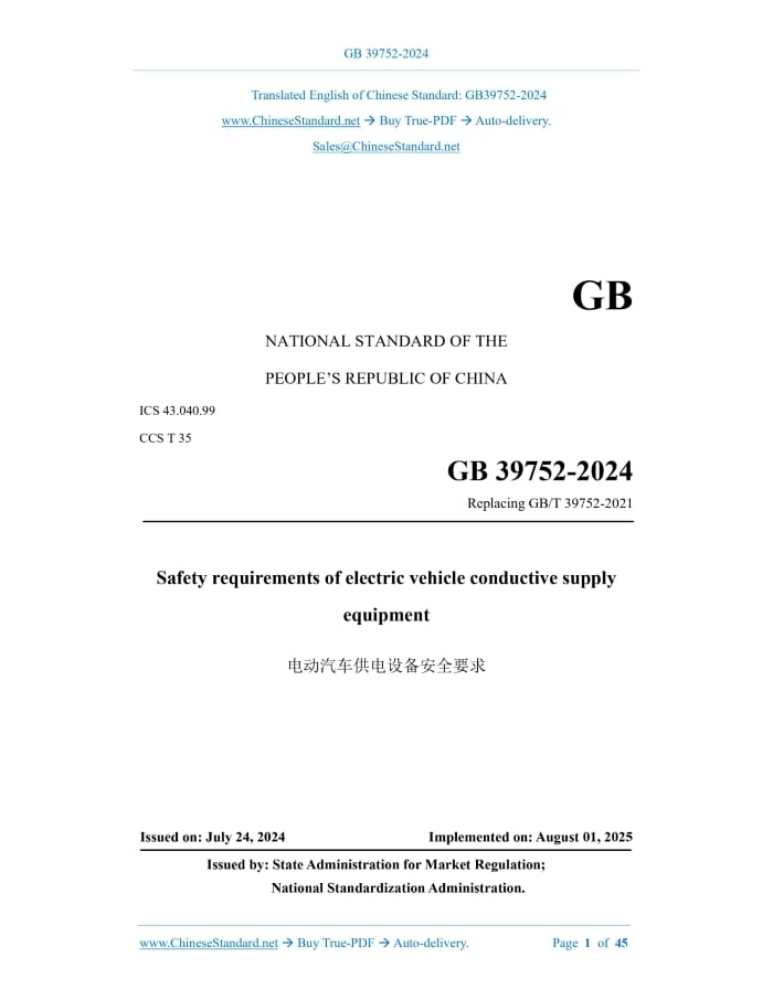 GB 39752-2024: Safety requirements of electric vehicle conductive supply equipment Delivery: 9 seconds. True-PDF full-copy in English & invoice will be downloaded + auto-delivered via email. See step-by-step procedure Status: Valid GB 39752: Historical versions