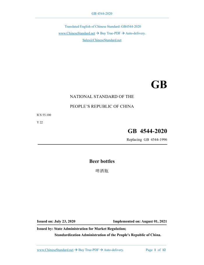 GB 4544-2020: Beer bottles Delivery: 9 seconds. True-PDF full-copy in English & invoice will be downloaded + auto-delivered via email. See step-by-step procedure Status: Valid GB 4544: Historical versions